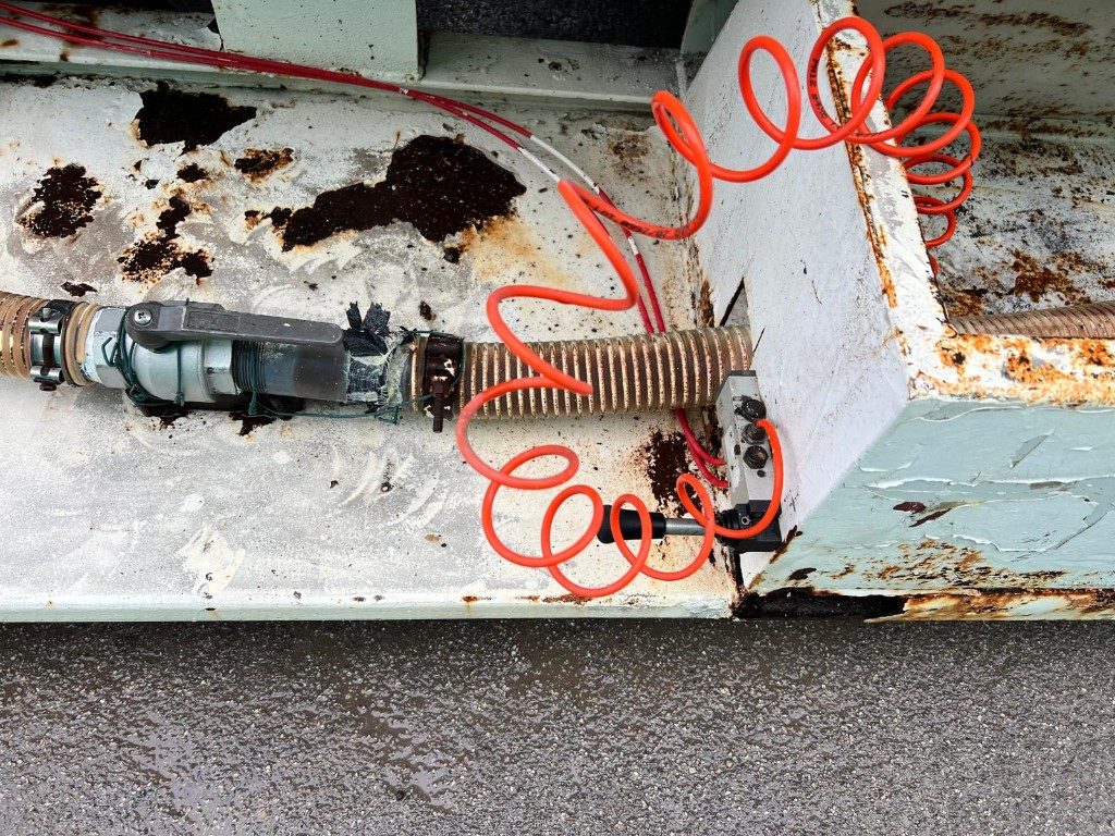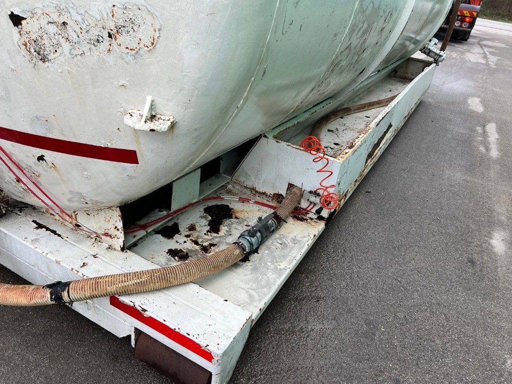 TITOLO: CISTERNA SCARRABILE USATA IN FERRO A SCOMPARTO UNICOCON NR 3 FORI DI SCARICO NR.1 PICCOLO NELLA PARTE ANTERIORE, NR. 1 MEDIO  NELLA PARTE LATERALE ANTERIORE E NR. 1 NELLA PARTE POSTERIORE A SARACINESCA CON GHIGLIOTTINA AD ARIA.PORTA TUBI LATERALE (LATO GUIDA) E DUE BOTOLE DI ALIMENTAZIONE NELLA PARTE SUPERIORE.