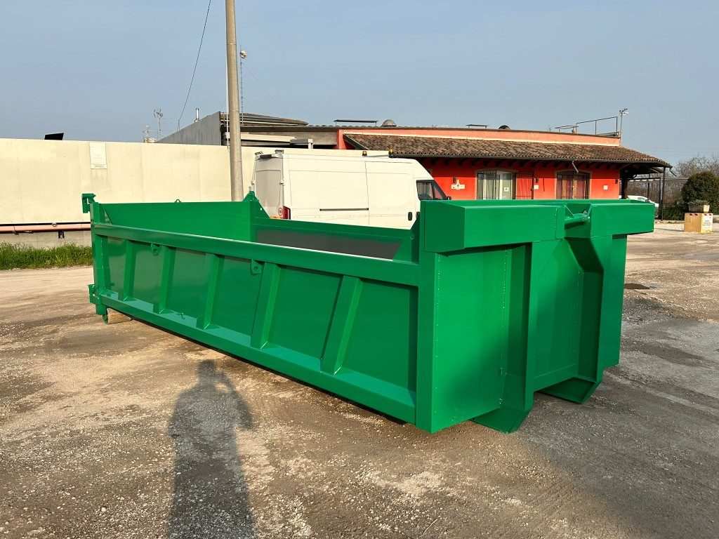 TITOLO: CONTAINER NUOVO SCARRABILE VASCA SQUADRATA APERTURA POSTERIORE ANTA E RIBALTA CON TRAVI DA 200 MM E PAVIMENTO IN APPOGGIO, GANCIO DA 0,60 MT, RUOTE MAGGIORATE E RINFORZO NELLA PARTE CENTRALE ESTERNA DELLA MEZZERIA PIU’ RINFORZO NELLA PARTE ANTERIORE NEL PUNTO DI SNERVATURA