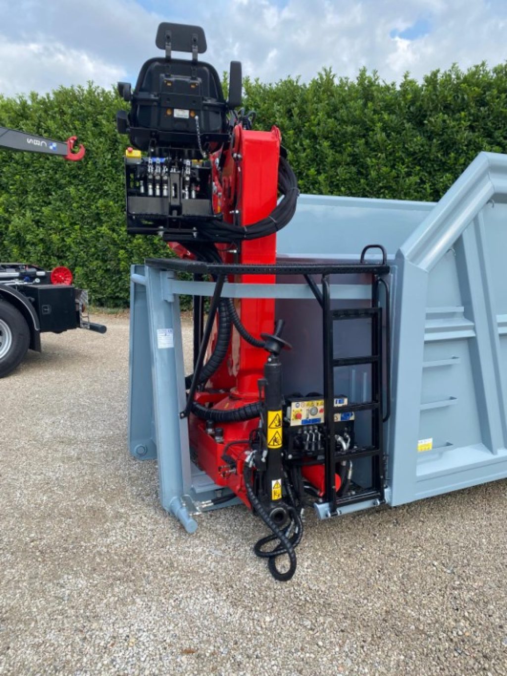 TITOLO: CONTAINER NUOVO SCARRABILE A CIELO APERTO PER INGOMBRANTI IN HARDOX E APERTURA POSTERIORE CON DUE PORTE A LIBRO, TRAVI DA 180 MM CON RINFORZO A ELLE SULLO SQUADRO PIU’ GRU NUOVA MARCHESI M6Z 02.73 E POLIPO 4 PALE