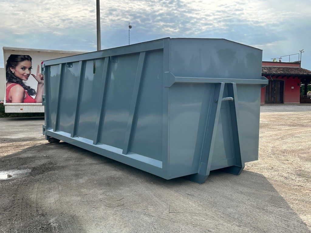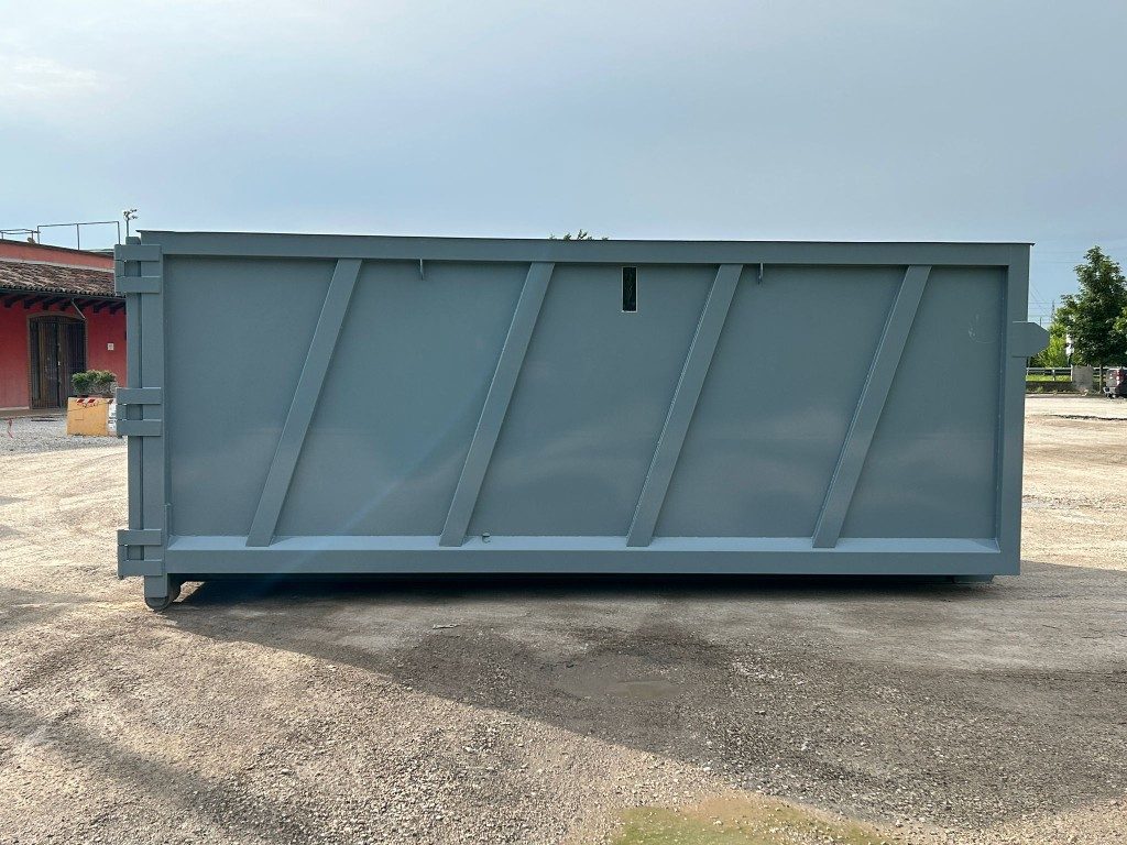 TITOLO: CONTAINER NUOVO SCARRABILE STAGNO CON TETTO FISSO PER SEGATURA E PORTA UNICA POSTERIORE CON BOCCHETTE, PAVIMENTO IN APPOGGIO ALLE TRAVI DA 200 MM E SPIONCINI LATERALI DI ISPEZIONE