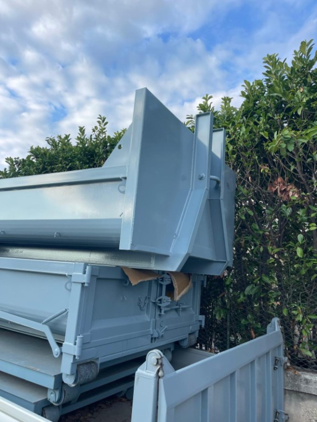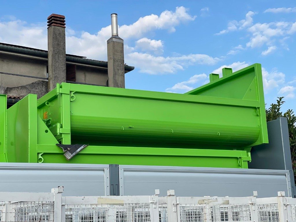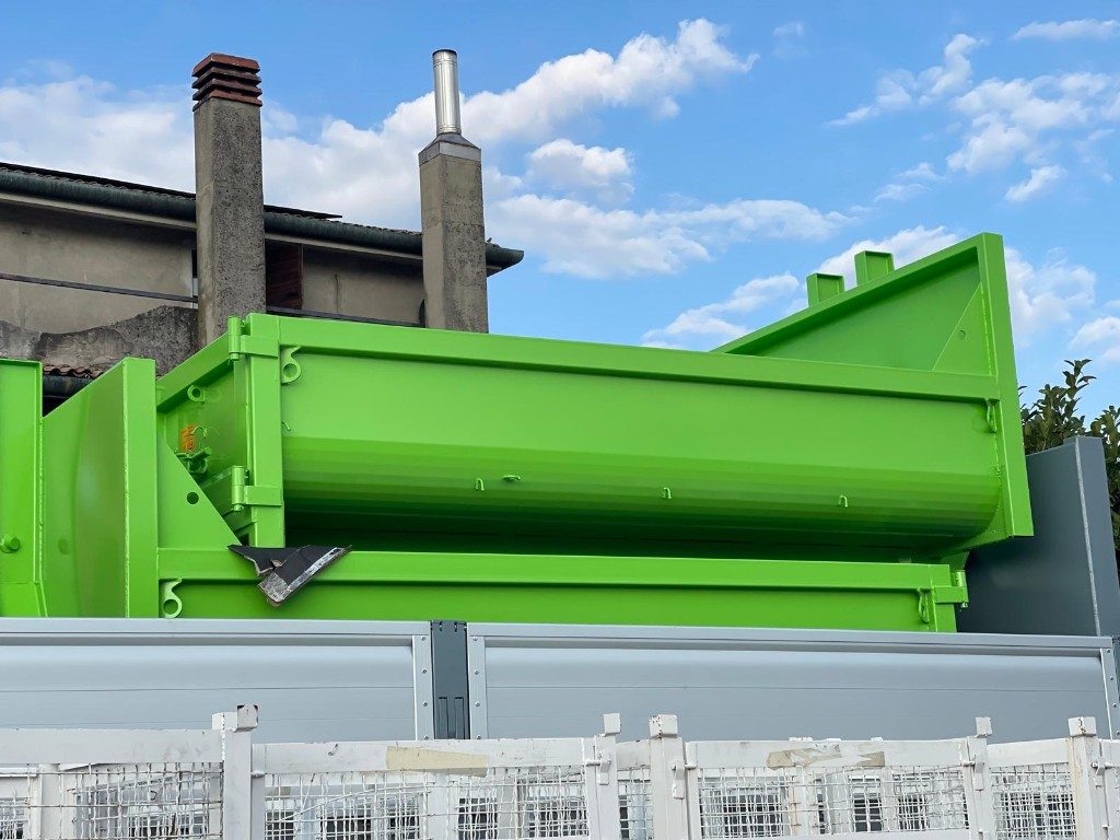 TITOLO: CONTAINER SCARRABILE NUOVO A CIELO APERTO PER INERTI CON VASCA ARROTONDATA E APERTURA POSTERIORE CON DUE PORTE A LIBRO, GANCIO BASSO DA 0,90 MT E FONDO IN APPOGGIO ALLE TRAVI DA 160 MM CON CORSIA DA 1,06 MT
