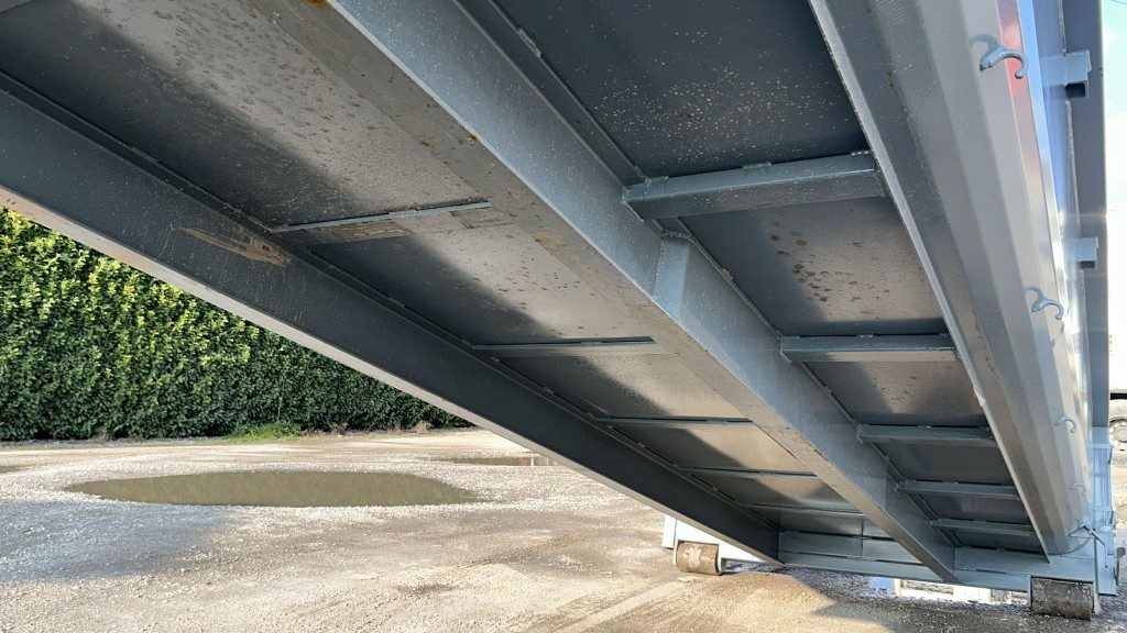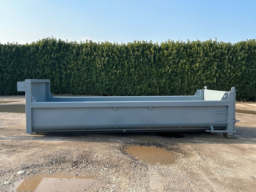 Container di forma arrotondata rinforzata con gancio maggiorato da 600 mm, rinforzo nel punto di snervatura parte anteriore, travi da 200 mm rinforzate nella parte centrale, ruote posteriori maggiorateFondo in appoggio alle travi con mensole laterali di supporto.