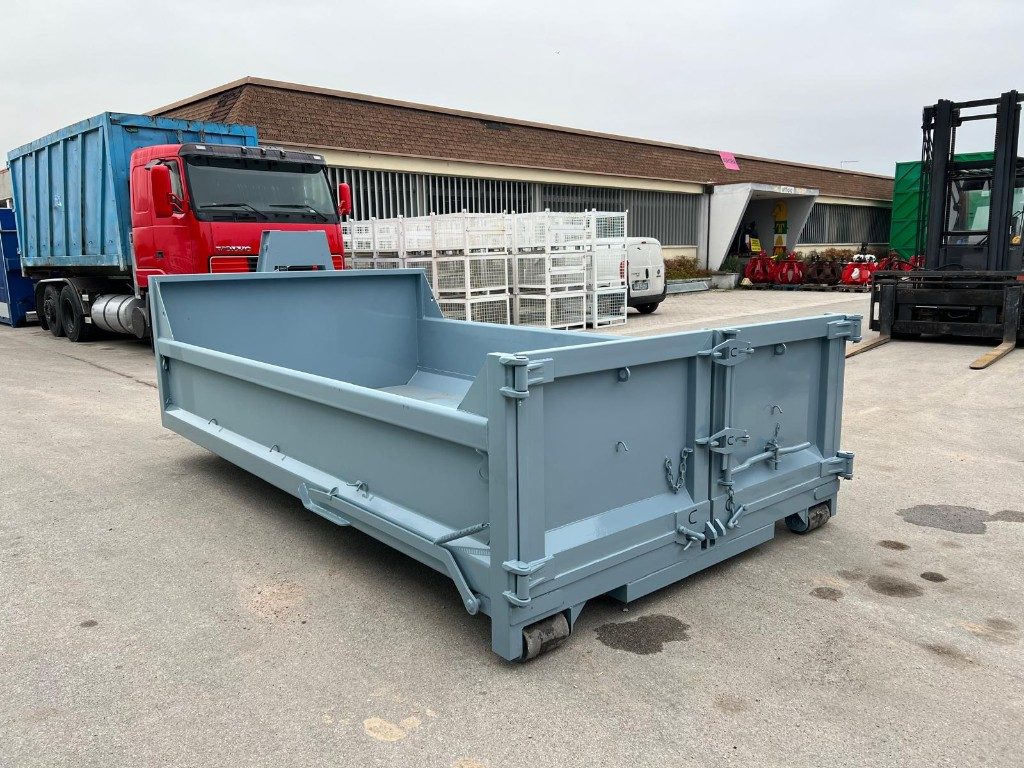 TITOLO: CONTAINER SCARRABILE NUOVO A CIELO APERTO PER INERTI CON SPACCO DI ROCCIA E APERTURA POSTERIORE CON DUE PORTE A LIBRO