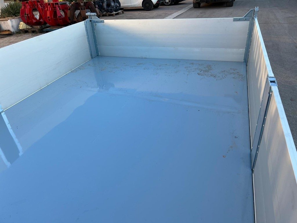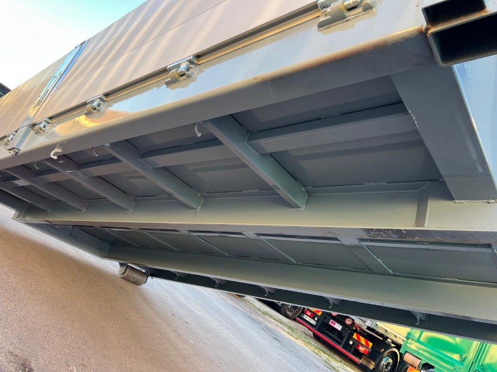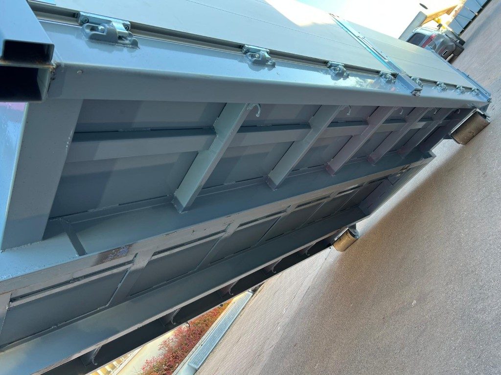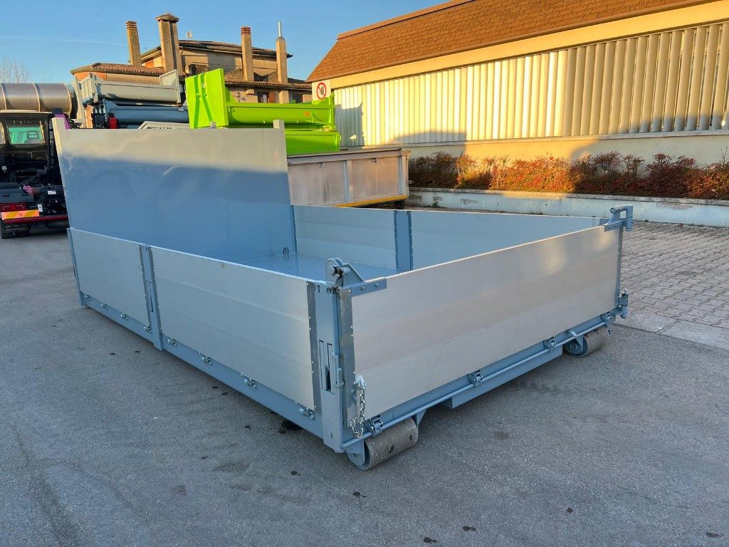 TITOLO: CONTAINER SCARRABILE NUOVO A PIANALE CON PIANTONI RIMOVIBILI E DUE SPONDE PER LATO IN TR1, SPONDA POSTERIORE IN ALLUMINIO A 2 EFFETTI ANTA E RIBALTA CON FONDO IN APPOGGIO ALLE TRAVI DA 180 MM CON GANCI DI ANCORAGGIO A SCOMPARSA