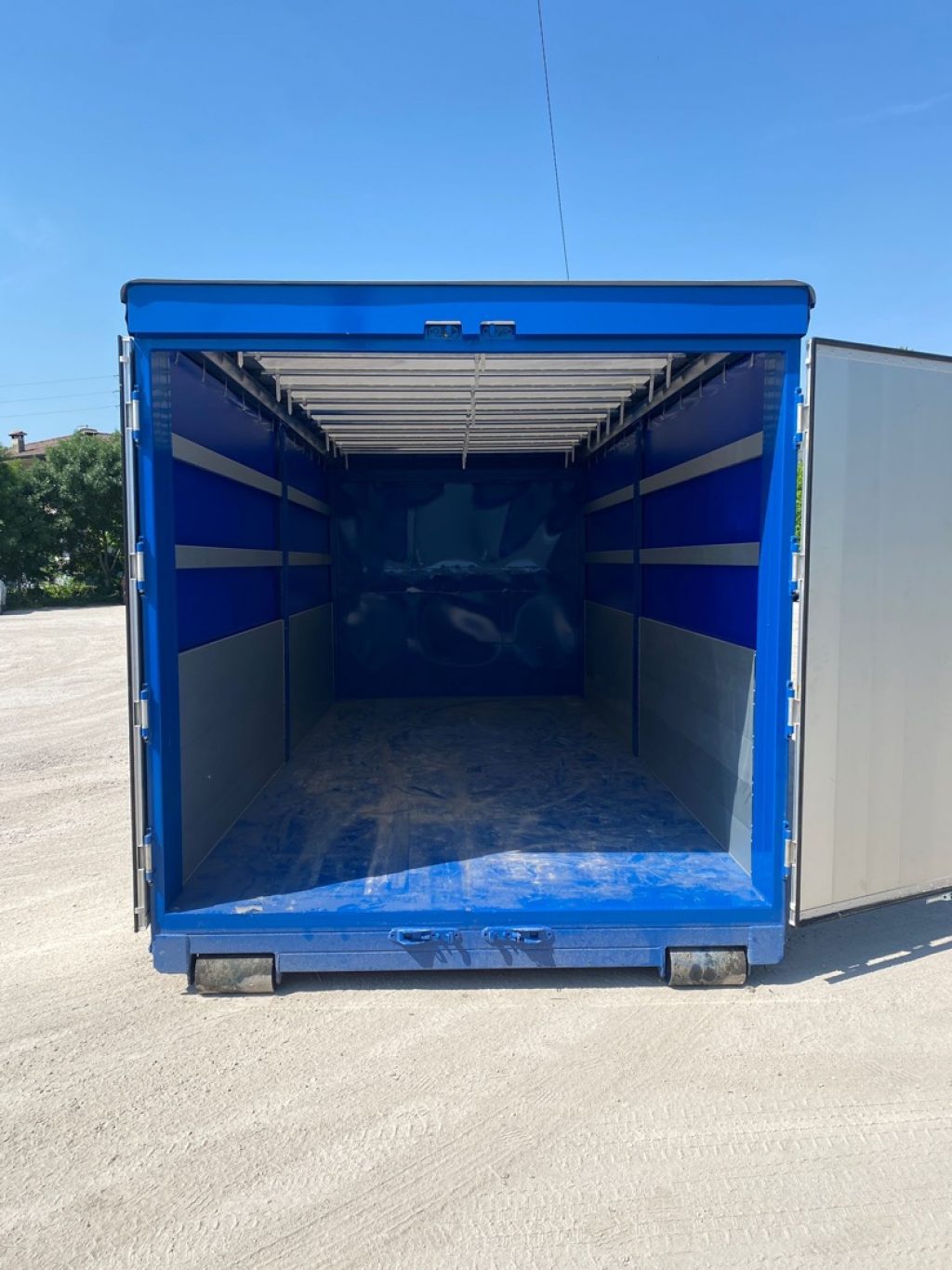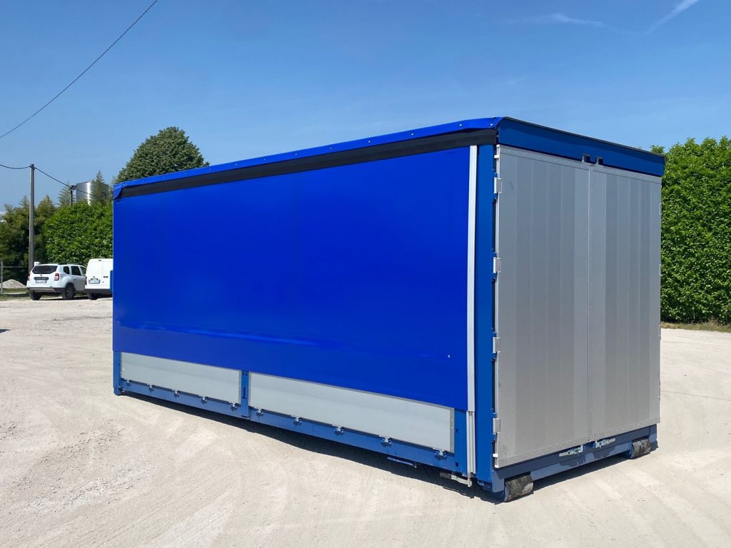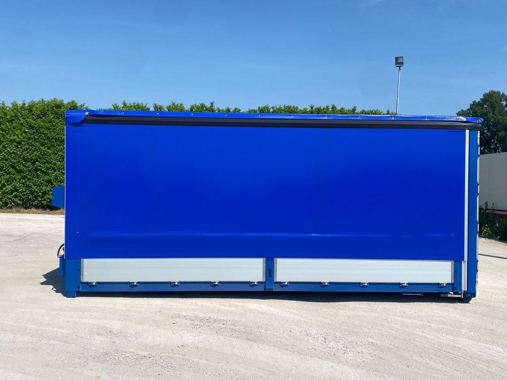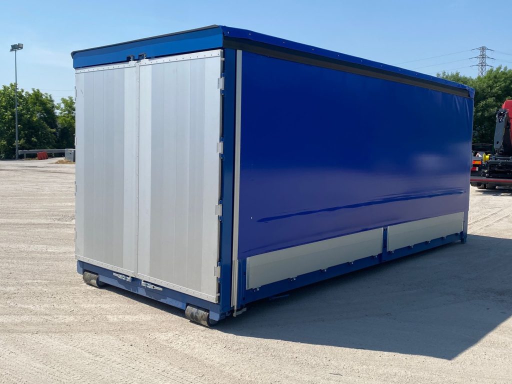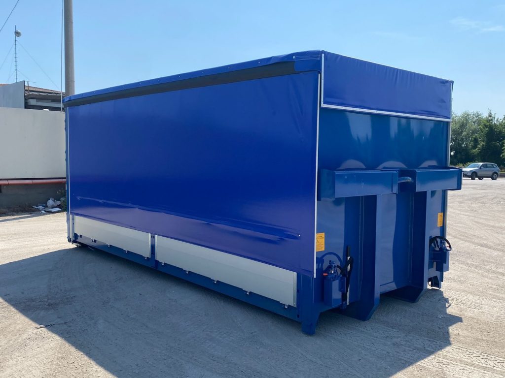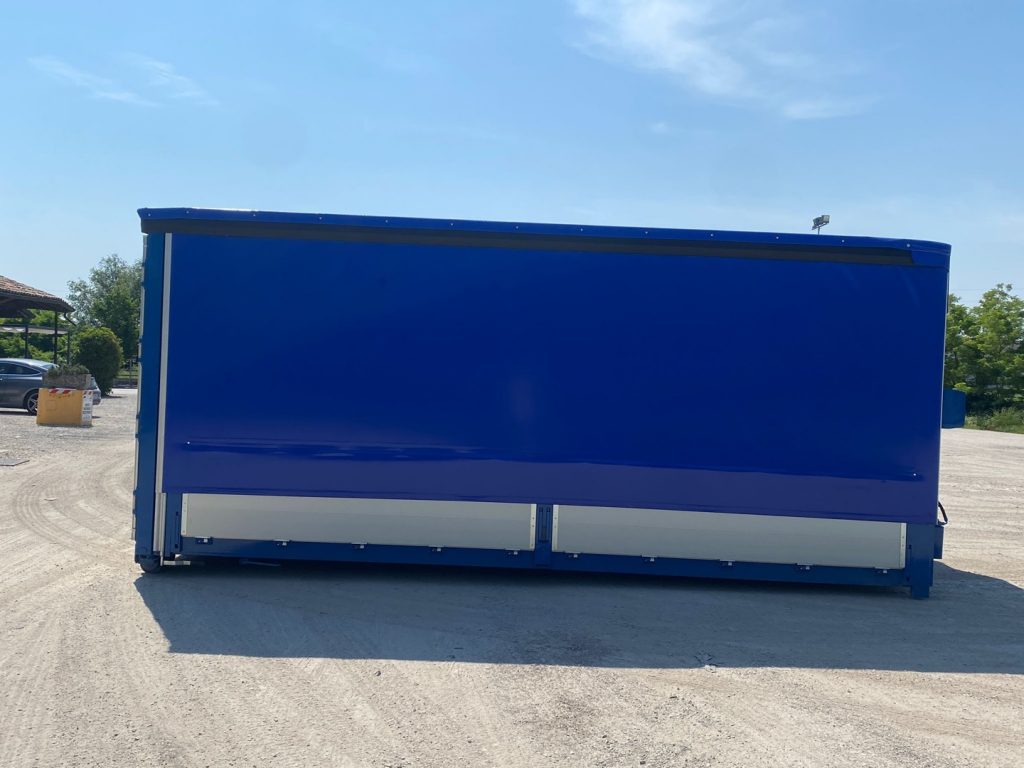 TITOLO: CONTAINER SCARRABILE NUOVO CENTINATO CON TELONE IGNIFUGO, ALZA E ABBASSA IDRAULICO CON 4 PISTONI IDRAULICI E APERTURA POSTERIORE CON 2 PORTE IN ALLUMINIO TR1 CON SPONDE LATERALI 1+1 IN TR1