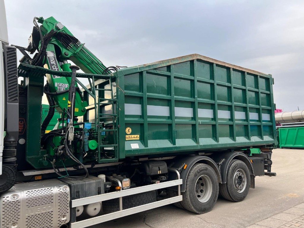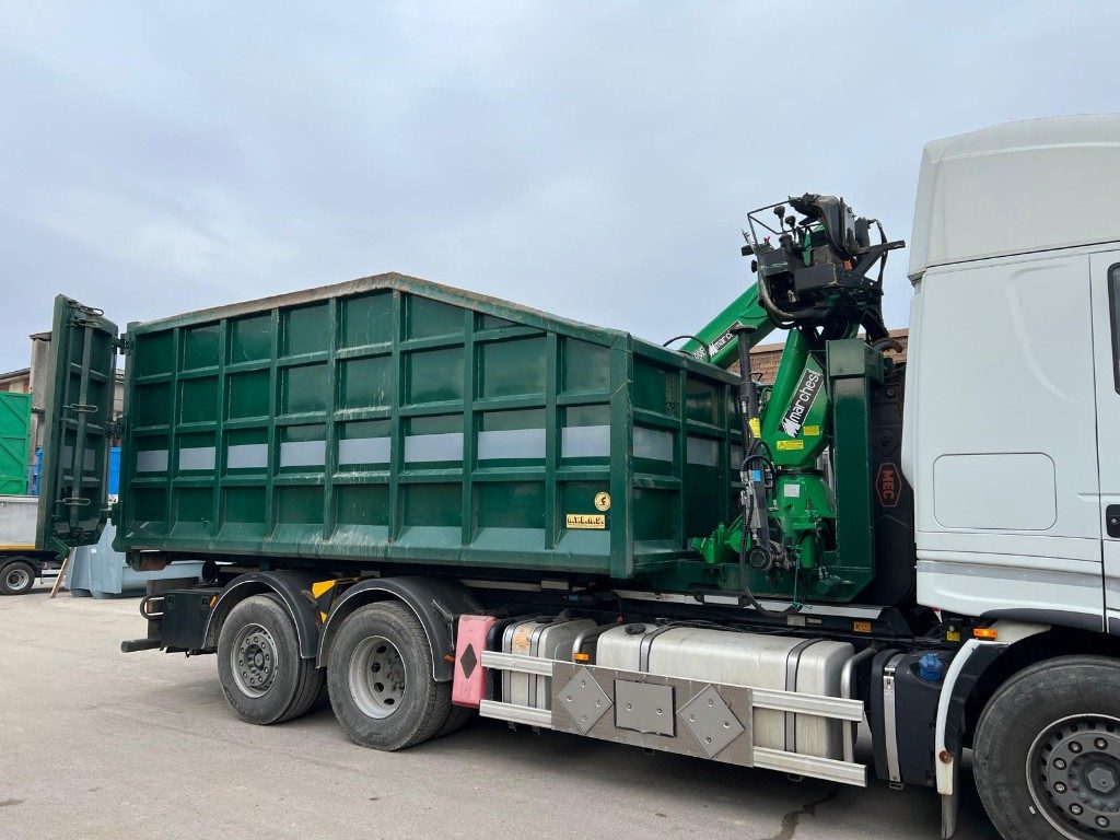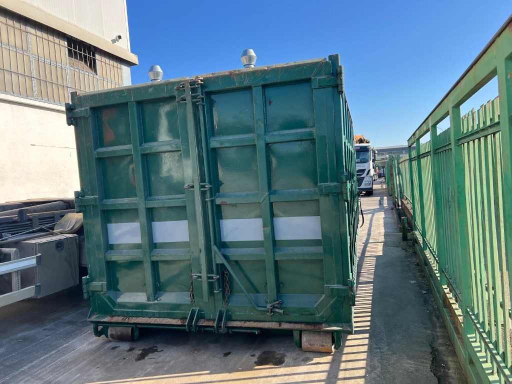 TITOLO: CONTAINER SCARRABILE USATO A CIELO APERTO PER INGOMBRANTI IN HARDOX RINFORZATA PER ROTTAME CON SPACCO DI ROCCIA PER TUTTO IL PERIMETRO SUPERIORE. APERTURA POSTERIORE CON DUE PORTE A LIBRO + GRU MARCHESI E POLIPO ROZZI A 6 PALE CON ROTORE