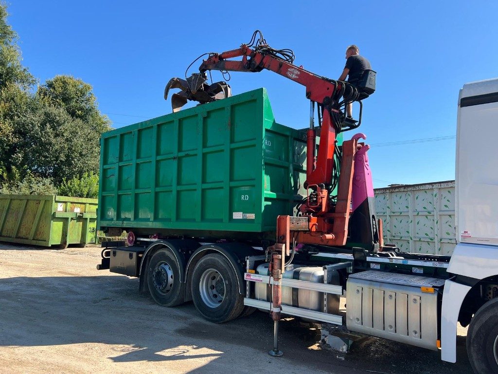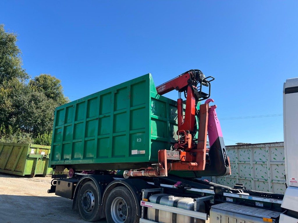 TITOLO: CONTAINER SCARRABILE USATO A CIELO APERTO PER INGOMBRANTI CON APERTURA POSTERIORE CON DUE PORTE A LIBRO + GRU MEC E POLIPO A 6 PALE CON ROTORE MECCANICO