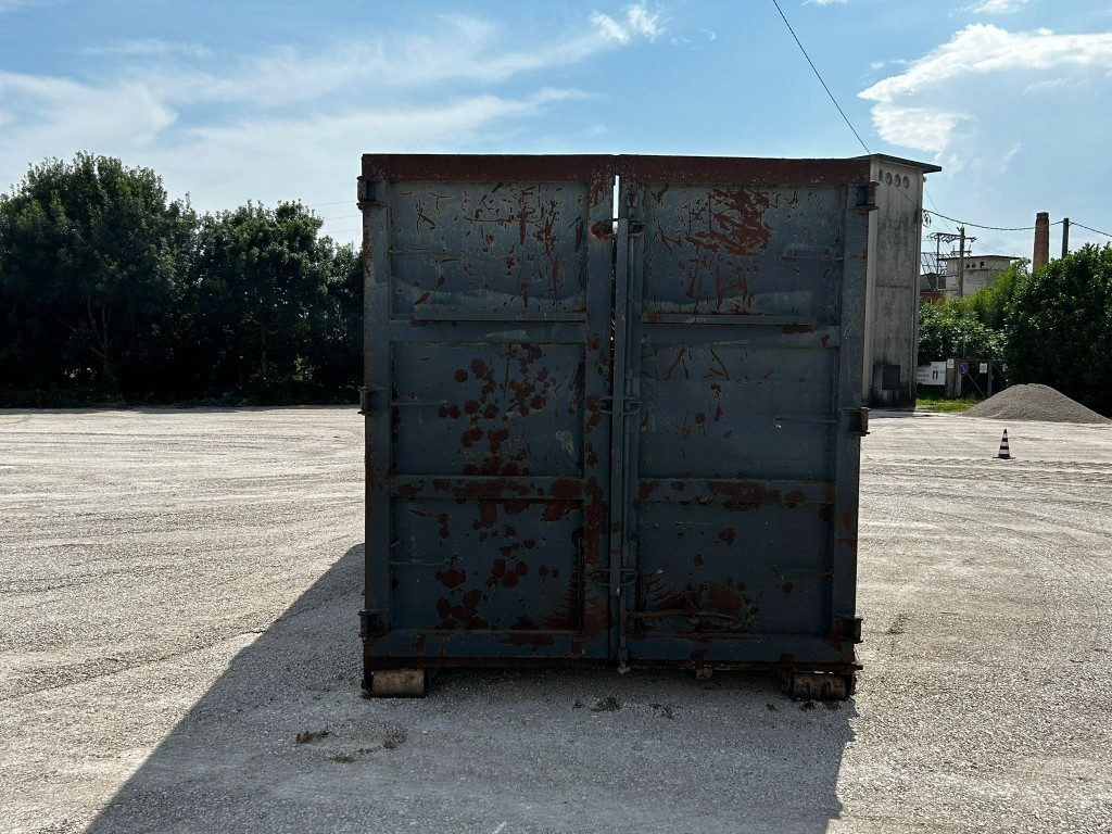 TITOLO: CONTAINER SCARRABILE USATO A CIELO APERTO PER INGOMBRANTI CON APERTURA POSTERIORE CON DUE PORTE A LIBRO E APERTURA LATERALE LATO GUIDA + GRU MARCHESI M10000L CON DISTRIBUTORE CON LEVA CLOCHE SENZA POLIPO