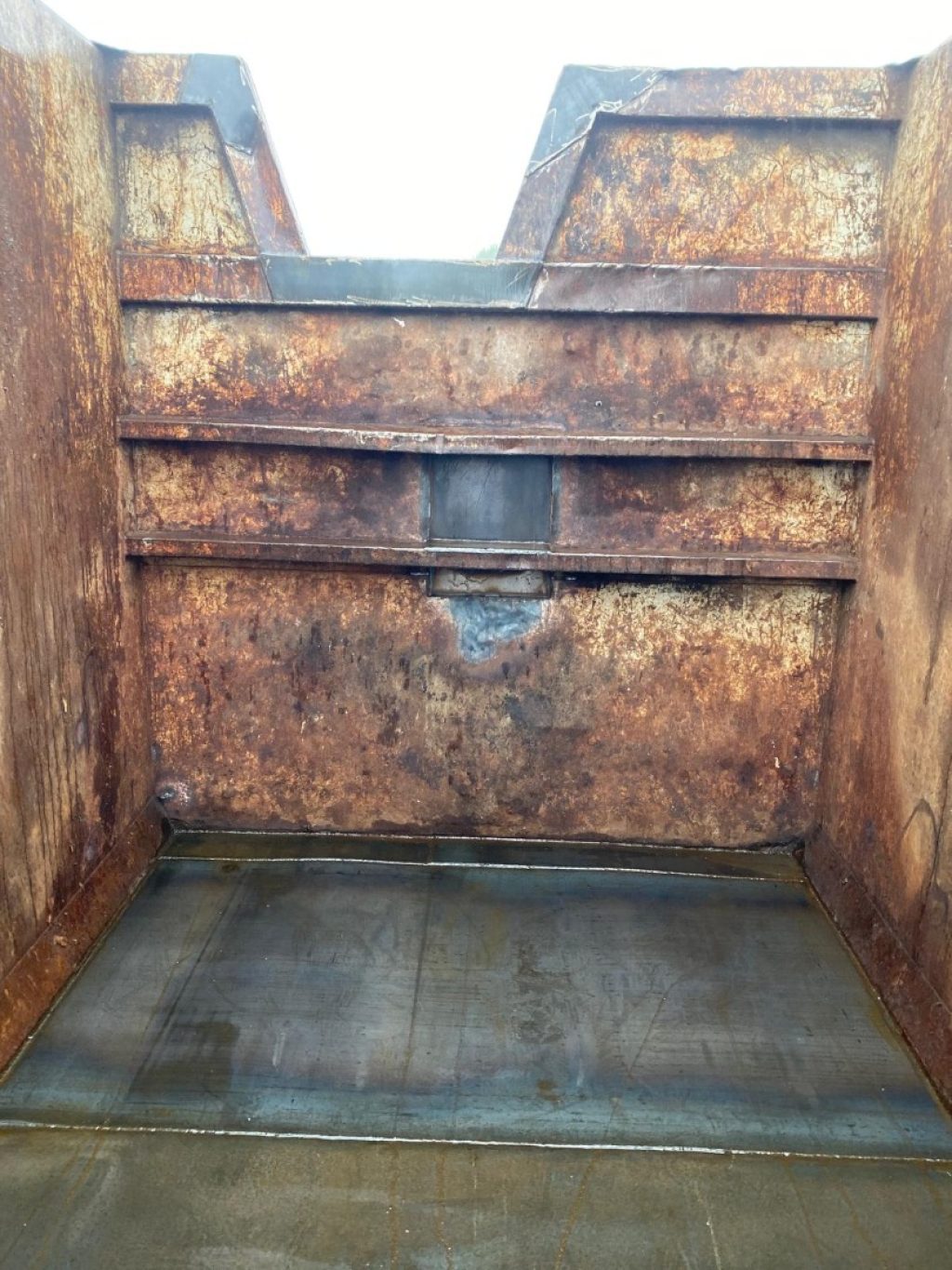 TITOLO: CONTAINER SCARRABILE USATO A CIELO APERTO PER MATERIALI FERROSI IN HARDOX CON APERTURA POSTERIORE CON DUE PORTE A LIBRO E SVASO PER GRU, FONDO E GANCIO ANTERIORE RIFATTI NUOVI