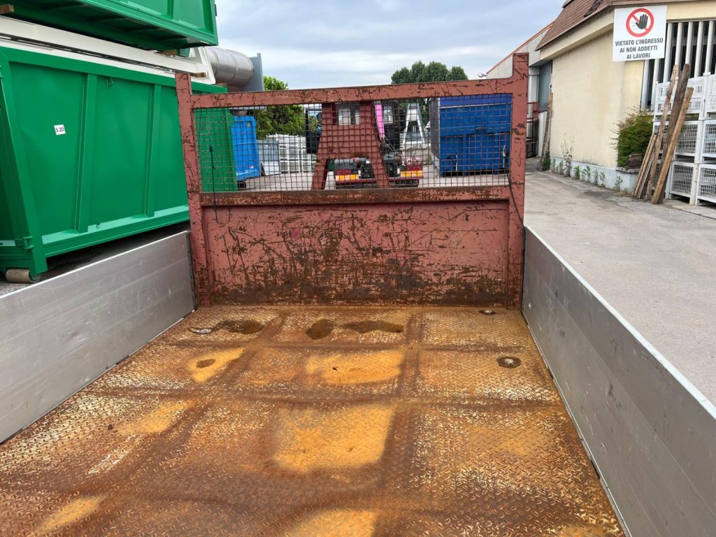 TITOLO: CONTAINER SCARRABILE USATO A PIANALE CON SPONDE IN ALLUMINIO TR1 CON TRAVI DA 160 MM PIU’ CAVALLETTO PORTA PALI ANTERIORE E CAVALLETTO REMOVIBILE POSTERIORE