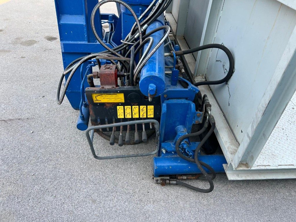 CONTAINER SCARRABILE USATO A PIANALE SENZA SPONDE CON CODA A ZERO E GRU