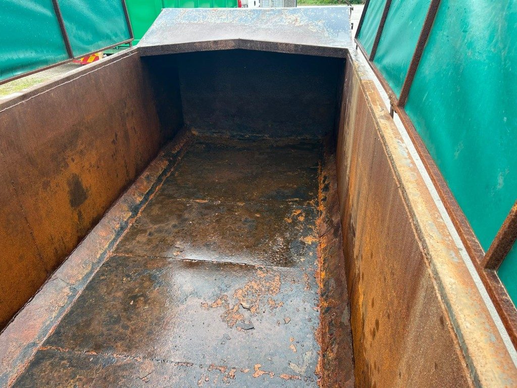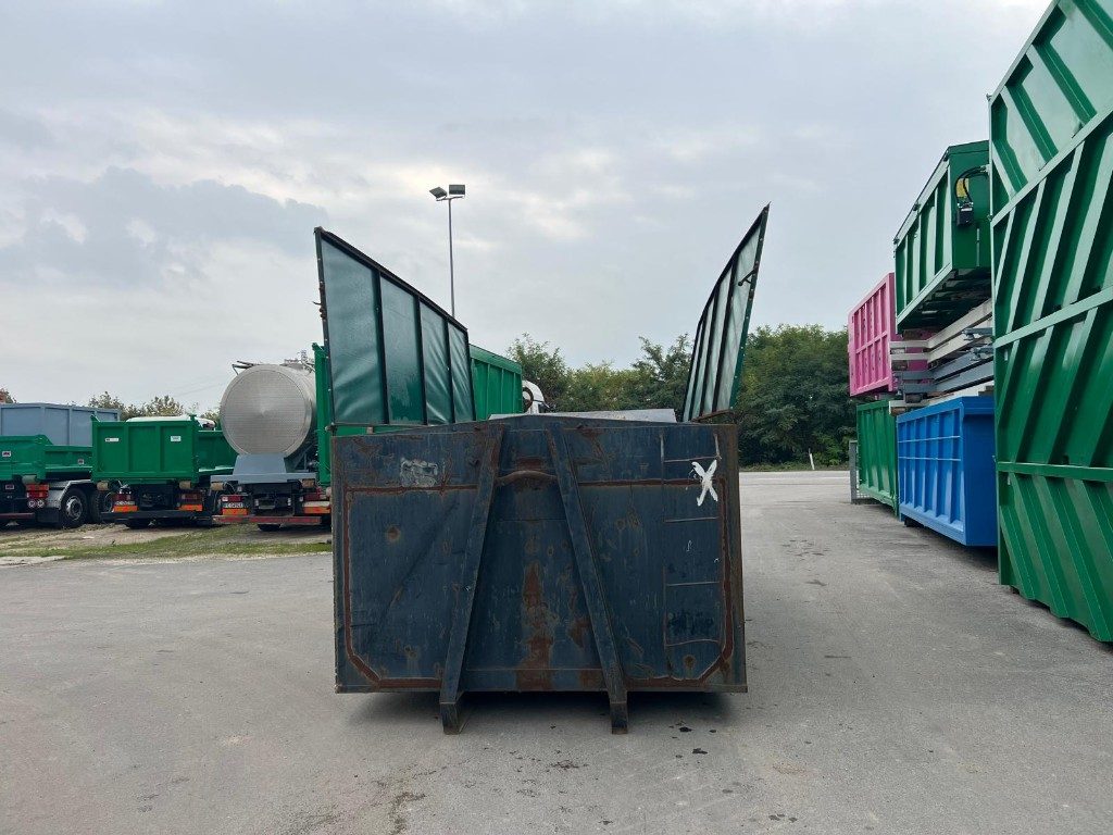 TITOLO: CONTAINER SCARRABILE USATO PER INGOMBRANTI CON COPERCHIO AD APERTURA MANUALE A FARFALLA CON 2 COPERTURA IN PVC E STRUTTURA IN FERRO, APERTURA POSTERIORE A PORTA UNICA DOPPIO EFFETTO ANTA E RIBALTA STAGNA CON COPERTURA TRATTIENI LIQUIDI DI MT. 1.00