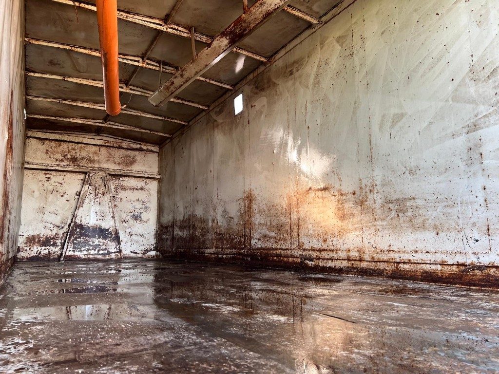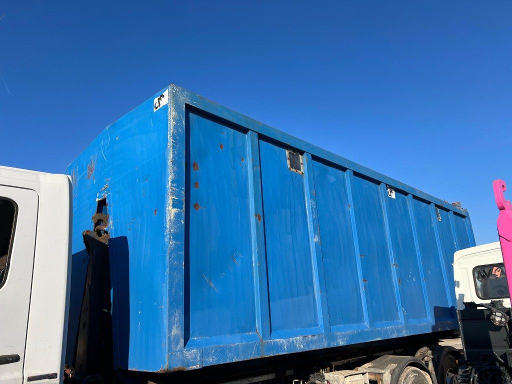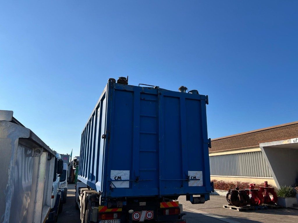 TITOLO: CONTAINER SCARRABILE USATO CON TETTO FISSO PER SEGATURA E GANCIO INCASSATO, PORTA UNICA POSTERIORE A LIBRO STAGNA CON 3 BOCCHETTE PER ASPIRAZIONE E PAVIMENTO IN APPOGGIO ALLE TRAVI