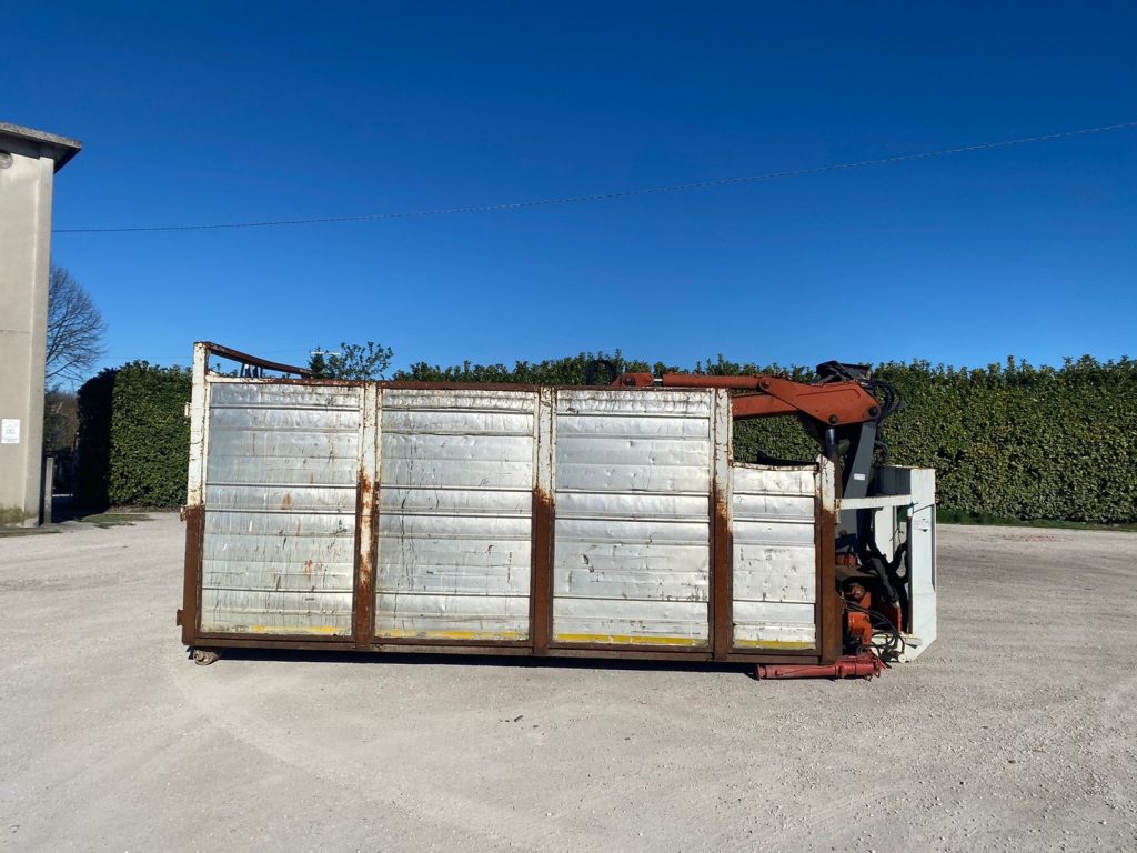 CONTAINER SCARRABILE USATO IN ALLUMINIO  A CIELO APERTO CON APERTURA POSTERIORE CON 2 PORTE A LIBRO + GRU B.O.B. CON POLIPO 5 PALE CON ROTORE MECCANICO
