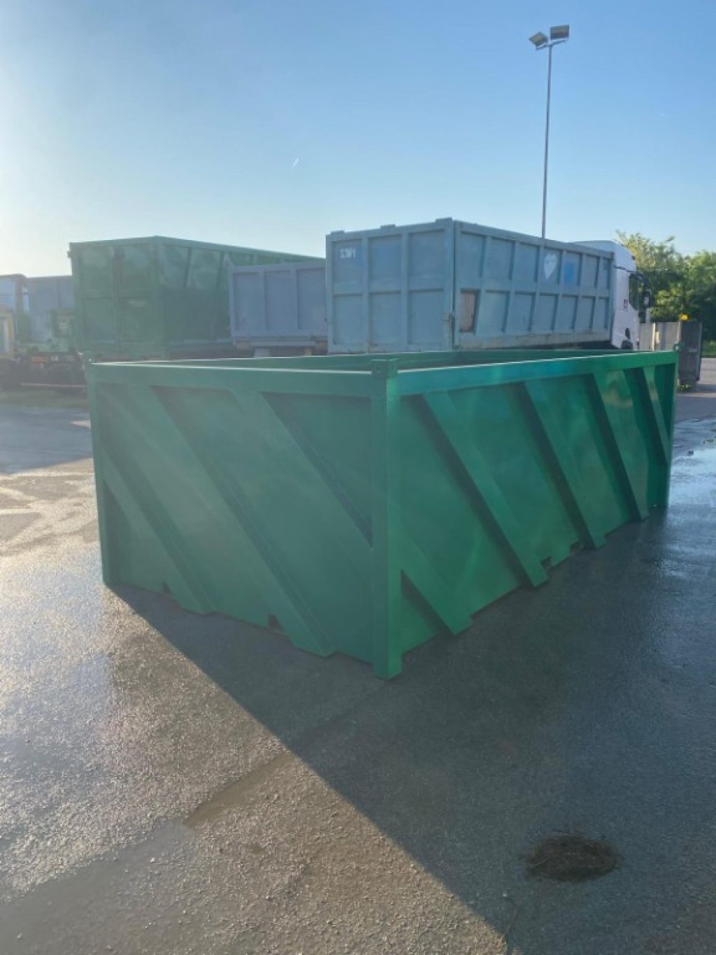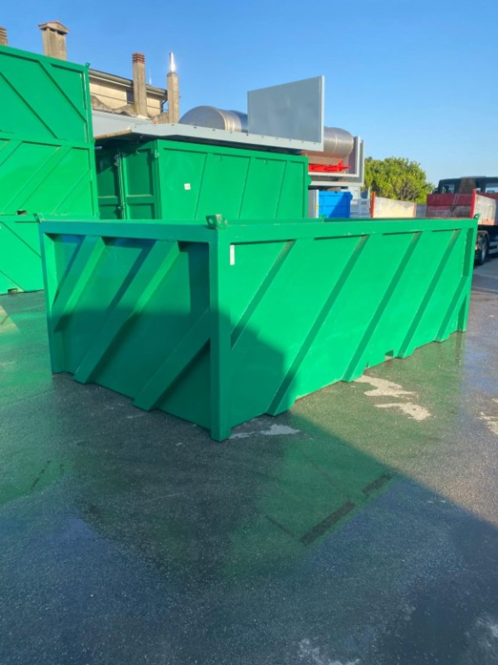 Con un parco mezzi in pronta consegna di oltre 50 camion ed oltre 150 cassoni, container con e senza gru scarrabili.